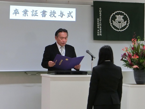 9月30日(火)本校第54回目の卒業式が挙行されました。3名の生徒が卒業証書を手に本校を巣立って行きました。 それぞれ充実した人生を歩んでほしいと切に願います。 卒業生諸君、卒業おめでとう!!